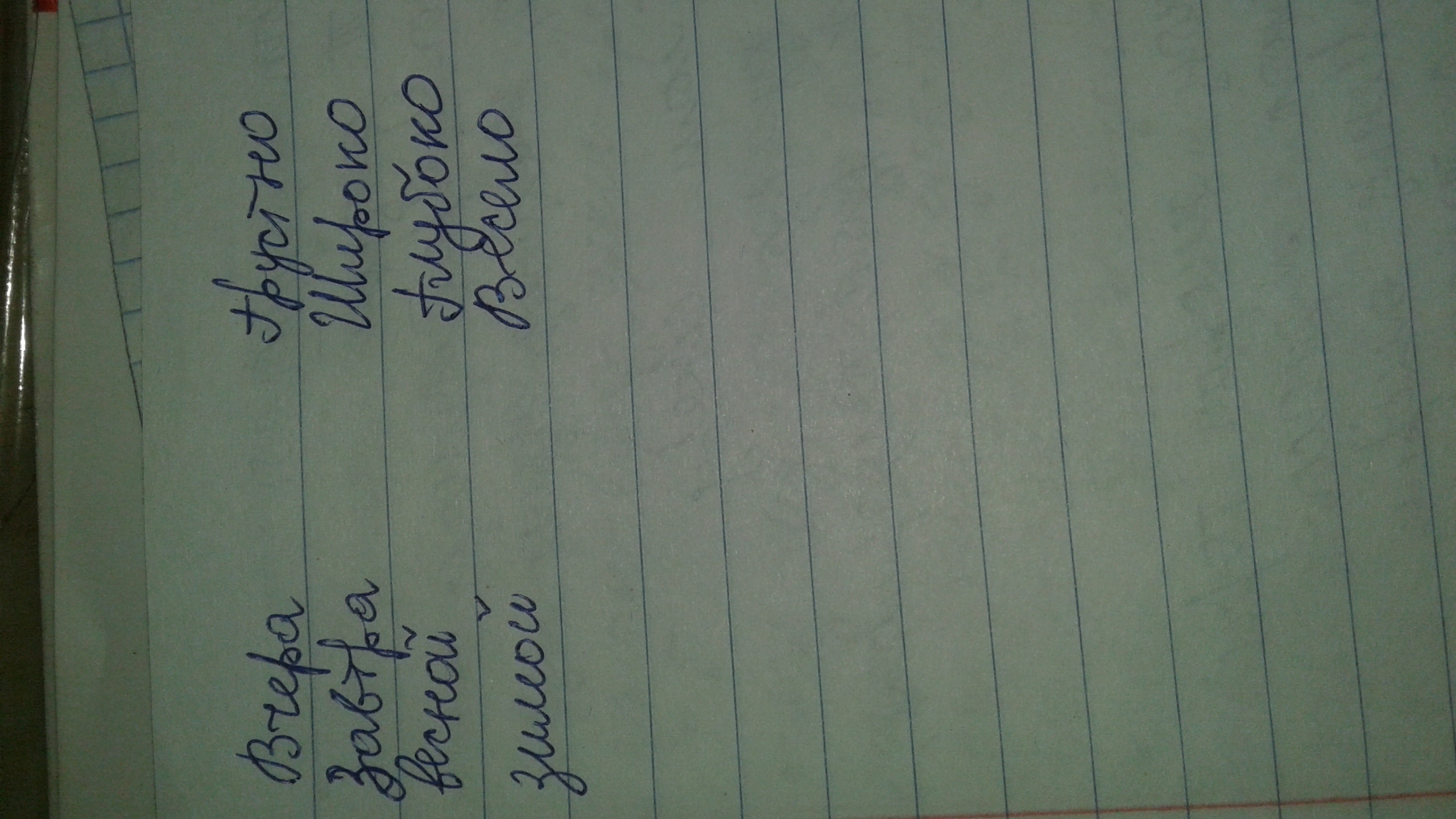 Выпишите наречия в два столбика по вопросам. Вчера, завтра, грустно, широко, весной, глубоко, зимой, весело. "в один столбик когда? в второй как? "