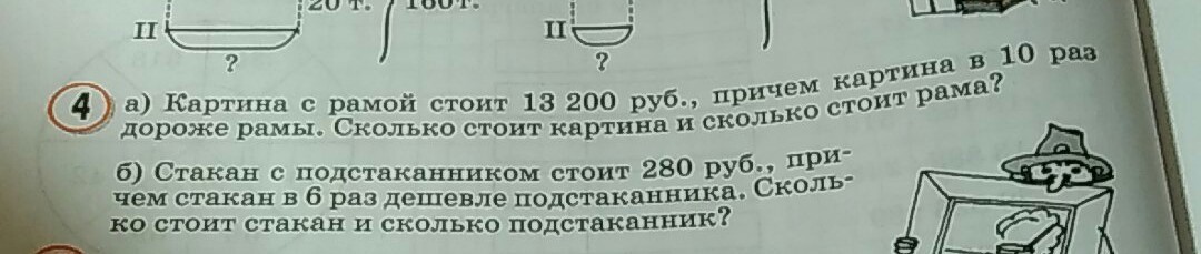 а) общая стоимость 13200 руб. Пусть х стоимость рамы, тогда стоимость картины 10х. Составим уравнение: