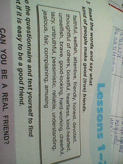 фейсфул, селфіш, етентів, френдлі, онест, девотед, сотфул оф озерс, боастфул, хатлес, каінд-хатед, анселфіш, брейв, гуд-лукінг, чіефул, лейзі, антрусфул, песімістік, релайб, андестендінг, джелоус, феа, камплейнінг, емюзін.
