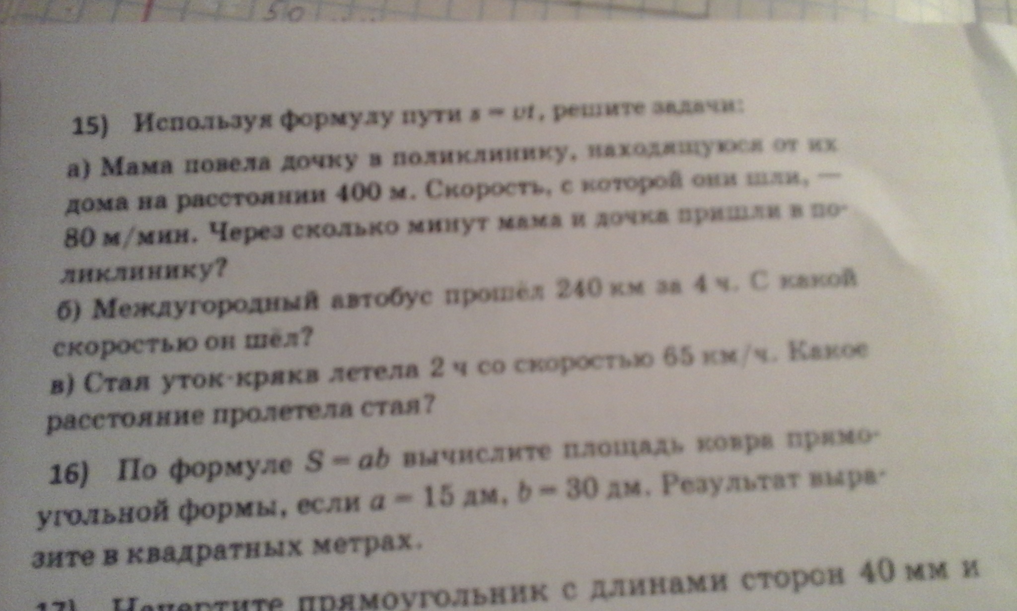 реши задачу.Изпользуя формулу s=V*t мама повела дочку в поликлинику находящуюся от их дома на расстояние 400м скорость с которой они шли 80м минута через сколько минут мама и дочка пришли в поликлинику