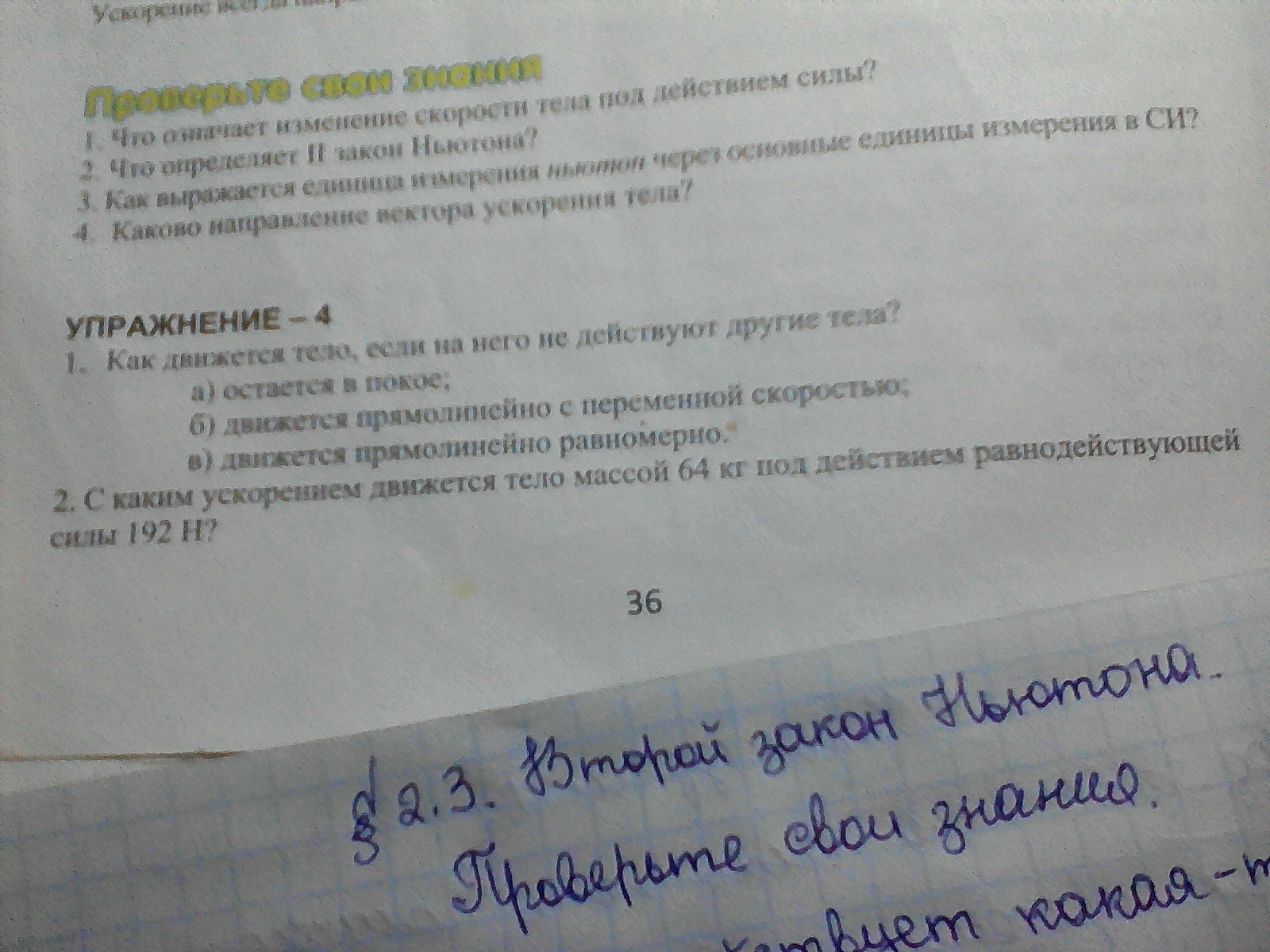 2. С каким ускорением движется тело массой 64 кг под действием равнодействующей силы 192 Н?