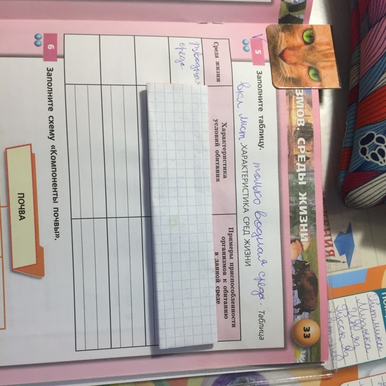 Биология заполнить таблицу,5 класс,характеристика сред жизни(второе)