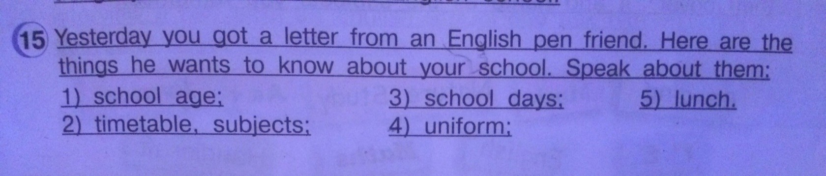 Ребята помогите пожалуйста составить 10 предложений на английском языке о школе россии ,1)в каком возрасте дети идут в школу,2)расписание предметов,3)школьные дни,4)униформа,5)обед!!!!для 4 класса