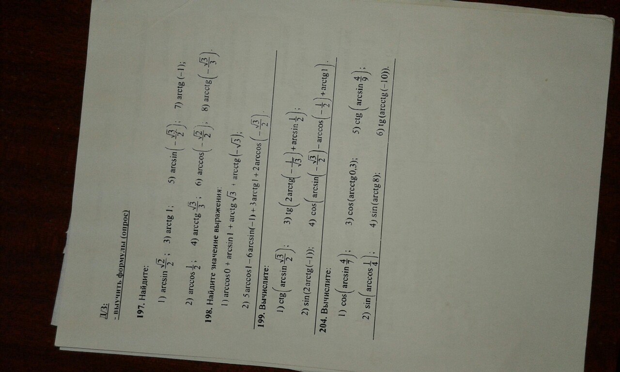5) arcsin(-√3/2)=-π/3; 6)arccos(-√2/2)=π-π/4=3π/4; 7)arctg(-1)=-π/4;