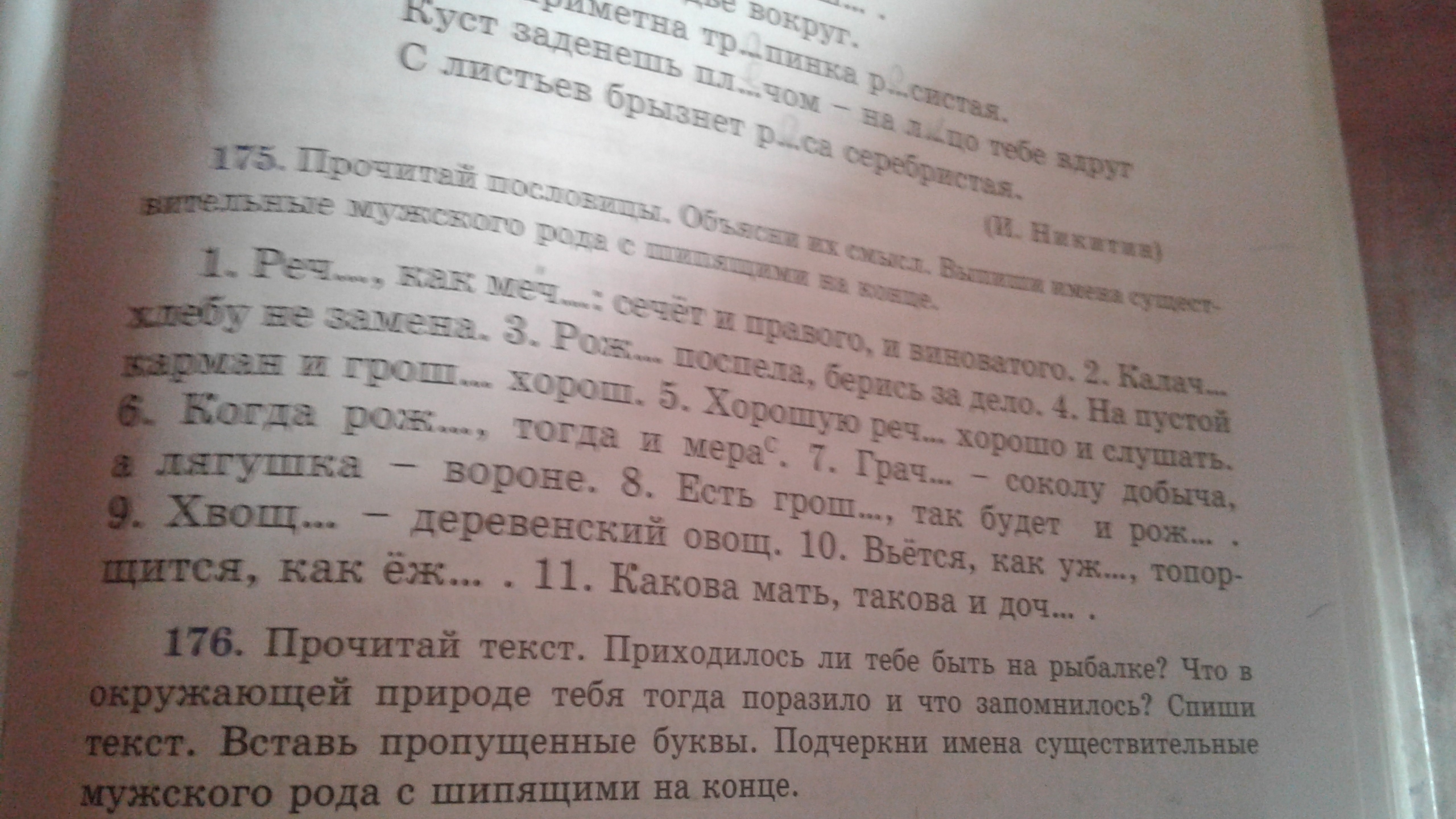 прочитай пословицы обисни их смысл выпиши имена существительные мужского пола с шипящими на конце