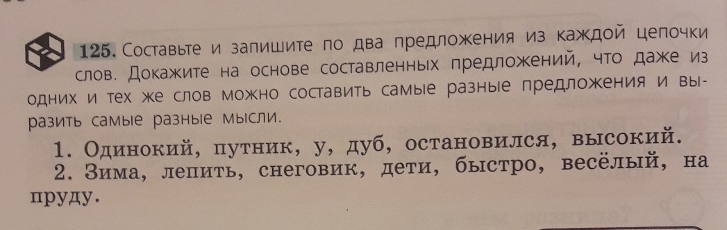составте и запишите по два предложения из каждой цепочки слов. Докажите на основе составленых предложений , что даже из одних и тех же слов можно составить самые разные предложения и выразить самые разные мысли.