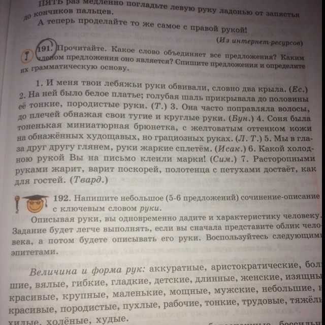 Все предложения объединяет слово "рука". Везде является дополнением,кроме 1-ого предложения (там оно является подлежащим)