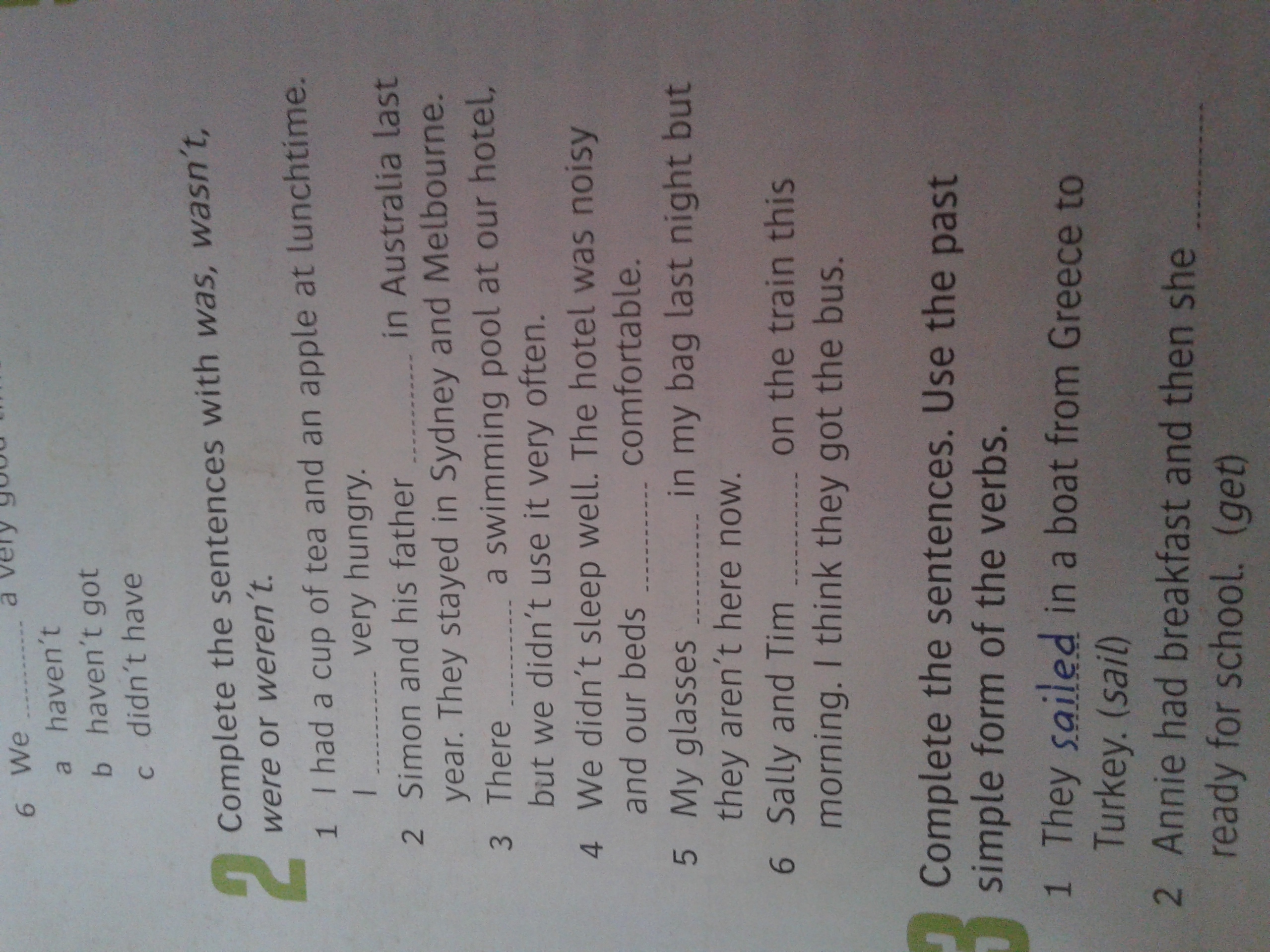 1 wasn't 2weren't 3was 4weren't 5were 6weren't