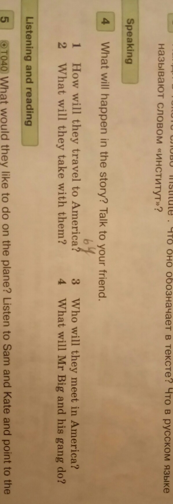 Что будет в истории? Поговори со своим другом. 1 Как они отправятся в Америку 3 Кто встретится в Америке? 2 Что они возьмут с собой? 4 Что будет делать г-н Биг и его банда?