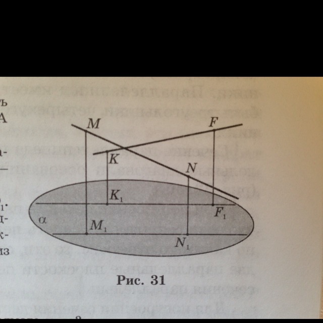 Пересекаются ли прямые MN и KF, изображённые на рисунке, если M1N1 и K1F1 - их проекции на плоскость а(альфа)