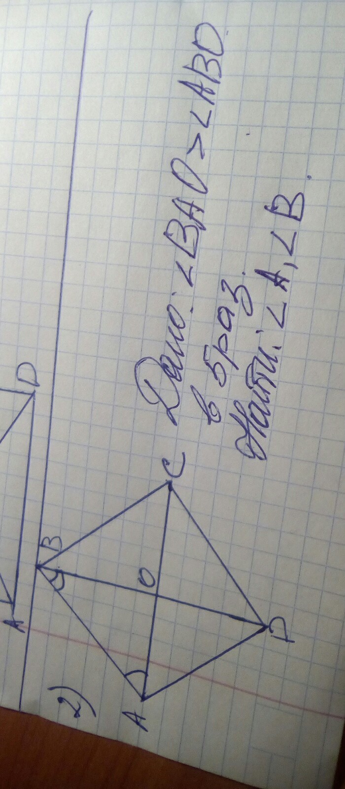 ну, если следовать из рисунка, то ABCD - ромб, а значит угол BOA = 90, тогда пусть угол ABO = x, тогда BAO = 5x, сумма углов в треугольнике равна 180, составим уравнение: