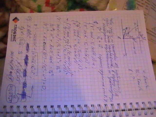 Из пункта А, расположенного на берегу реки необходимо попасть в пункт В, двигаясь по прямой АВ, ширина реки АС=b=1км, ВС=а=2км, скорость лодки относительно воды v=5км/ч, а скорость течения реки u=2км/ч. За какое время t может быть пройден отрезок АВ?