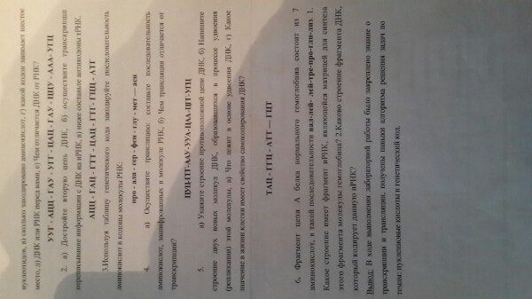 5 задание: а) АТГ - ЦЦГ - ТТА - ЦГА, б) в) - здесь я тоже бессилен. г) Ну, размножение типа. Другого варианта я не вижу. Деление, в его основу положено копирование ДНК