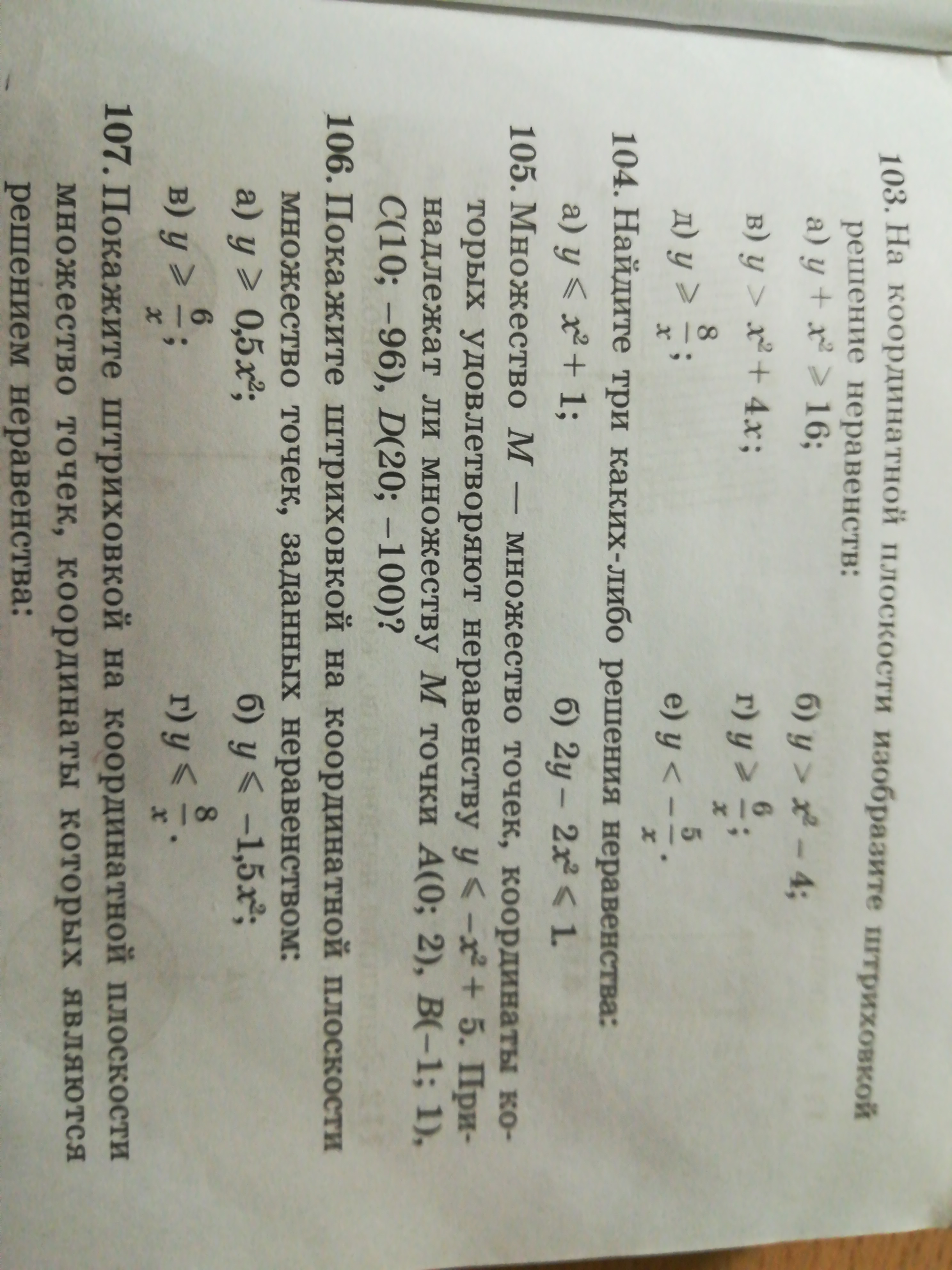 А) 2≤-(0)²+5 ⇒ 2≤5 - неравенство выполняется, точка А принадлежит множеству М