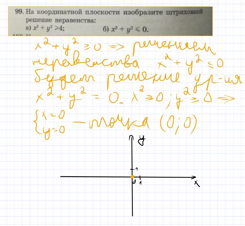 ответ : объединение а) и б) , т.е. все точки плоскости ,кроме внутренних точек окружности c центром O(0;0) и радиусом R=2.