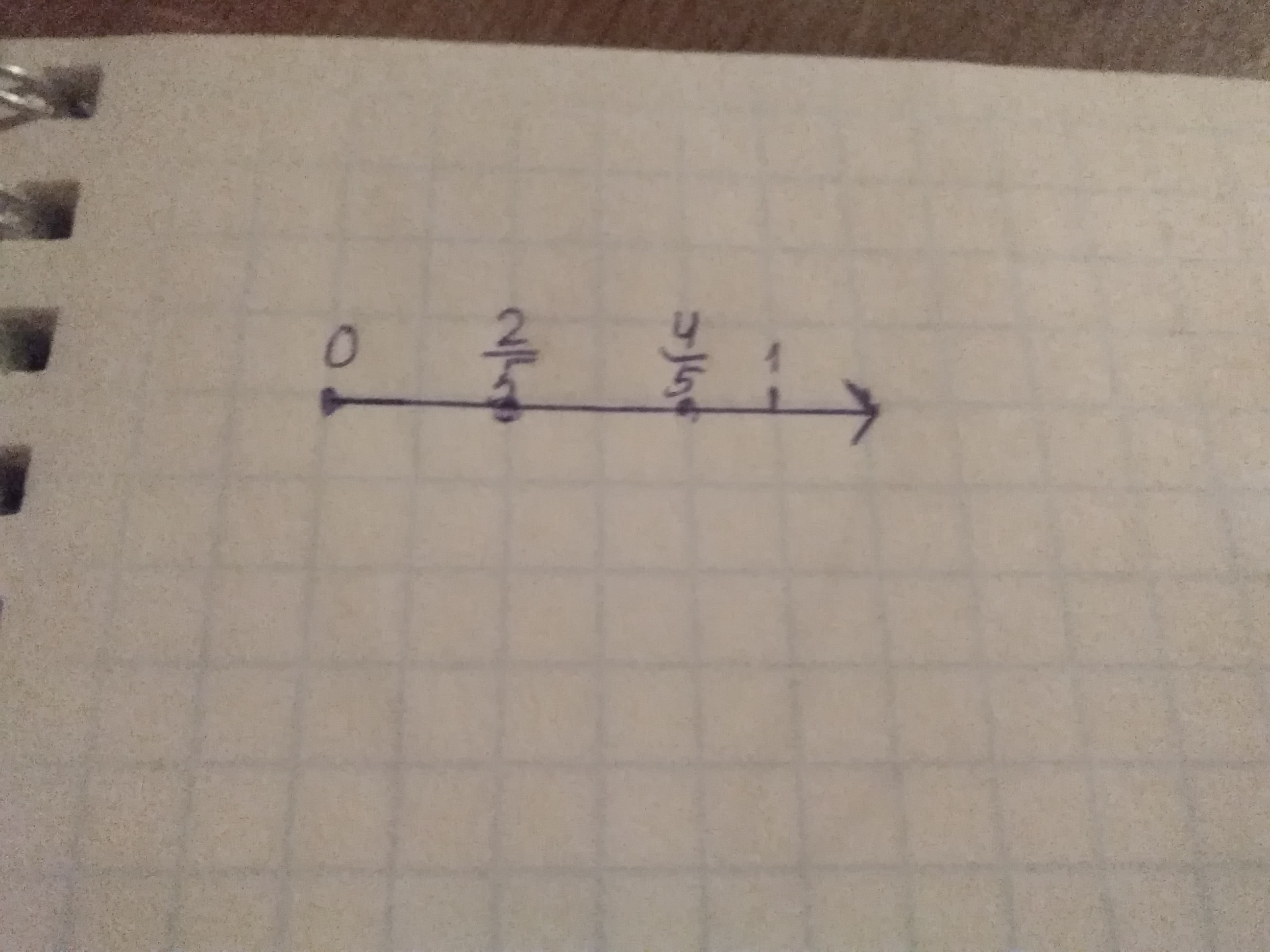 начертите координстный луч за единичный отрезок примите длину 5 клеток тетради отмерьте на координатномлуче точки. Изображаюшие дроби: 2/5; 4/5;