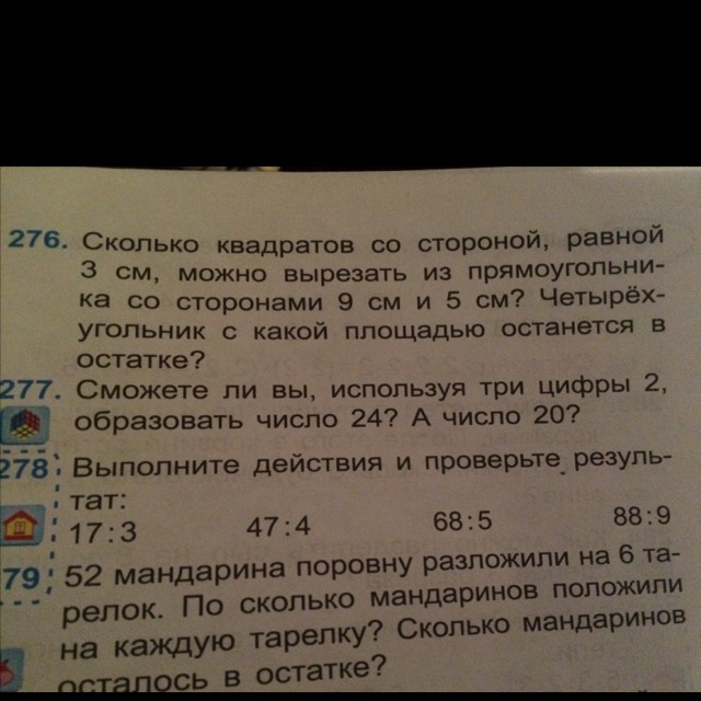 Возьми за одну клеточку один сантиметр нарисуй прямоугольник со сторонами 9 и 5 а потом в этом прямоугольнике нарисуй квадраты со сторонами 3