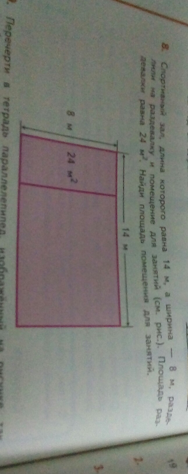 потом отнять от всей площади площадь раздевалки: 112-24=88(м^2) найдем площадь для заняття