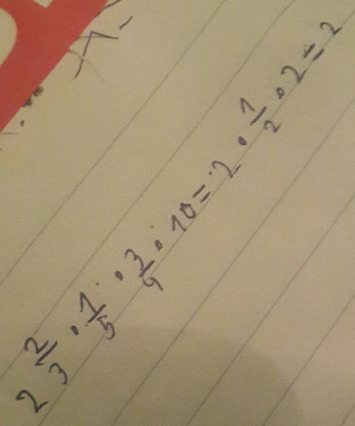 2 2/3 × 1/5 × 3/4 × 10 = 2 × 1/2 × 2 = 2