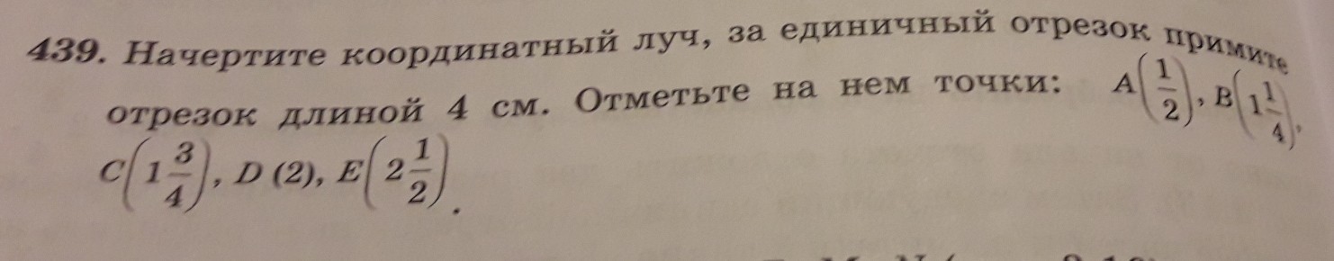 номер 439 Начертите координатный луч за единичный отрезок примите отрезок длиной 4 см .Отметьте на нём точки :