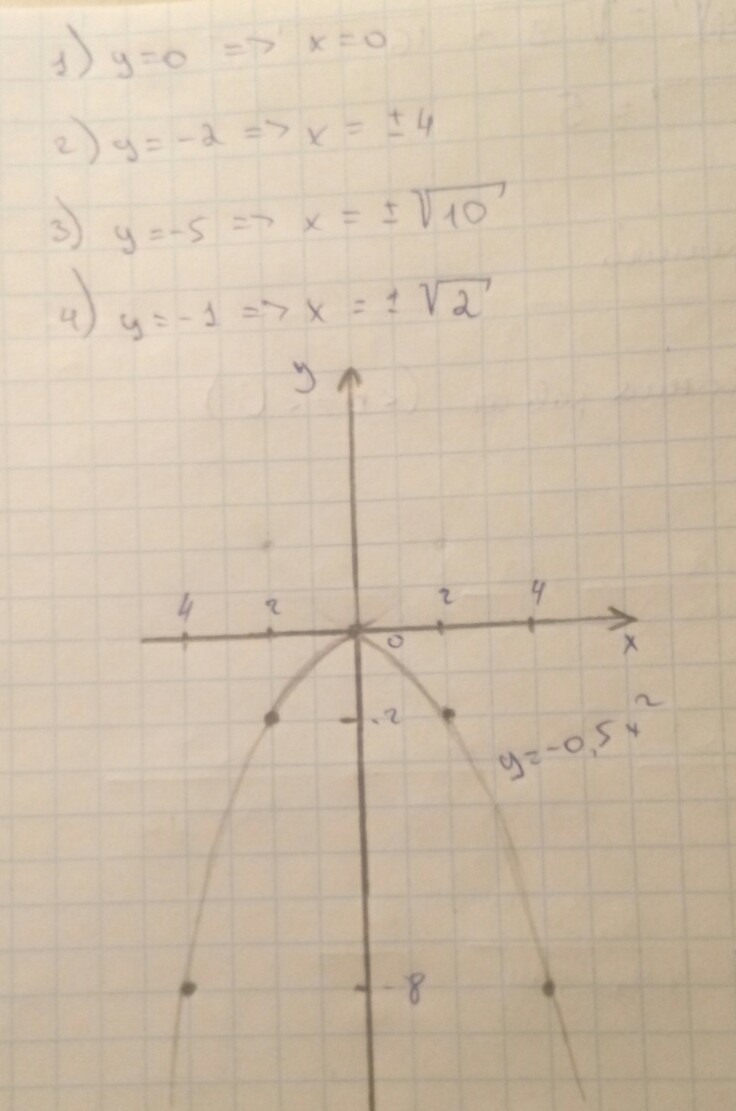 Начерти график квадратичной функции у=-0,5x². С помощью графика найди значения аргумента x, для которых: