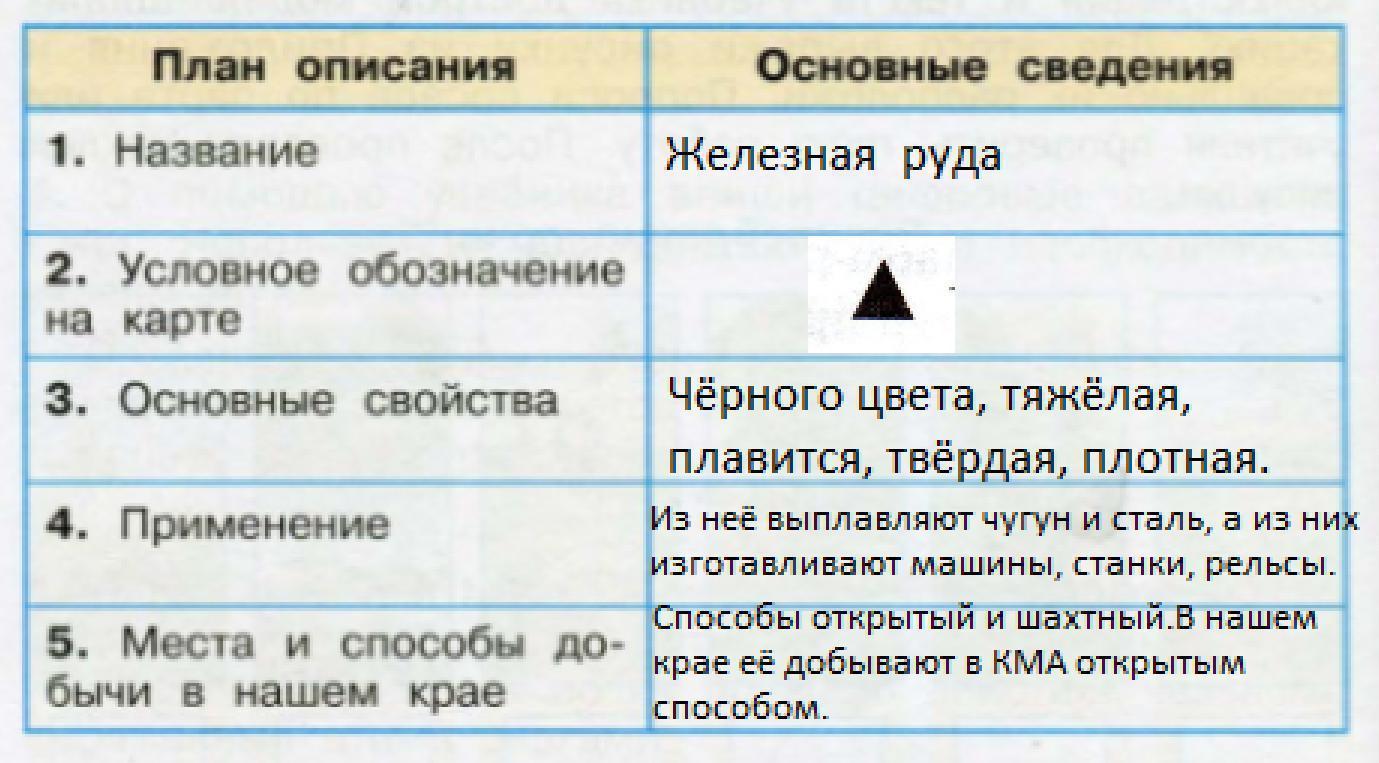 Описание железной руды по плану 1.название условный знак,2.свойства,3.применение,4.способы добычи срочно пожалуйста по быстрее дам последнее кол-во баллов