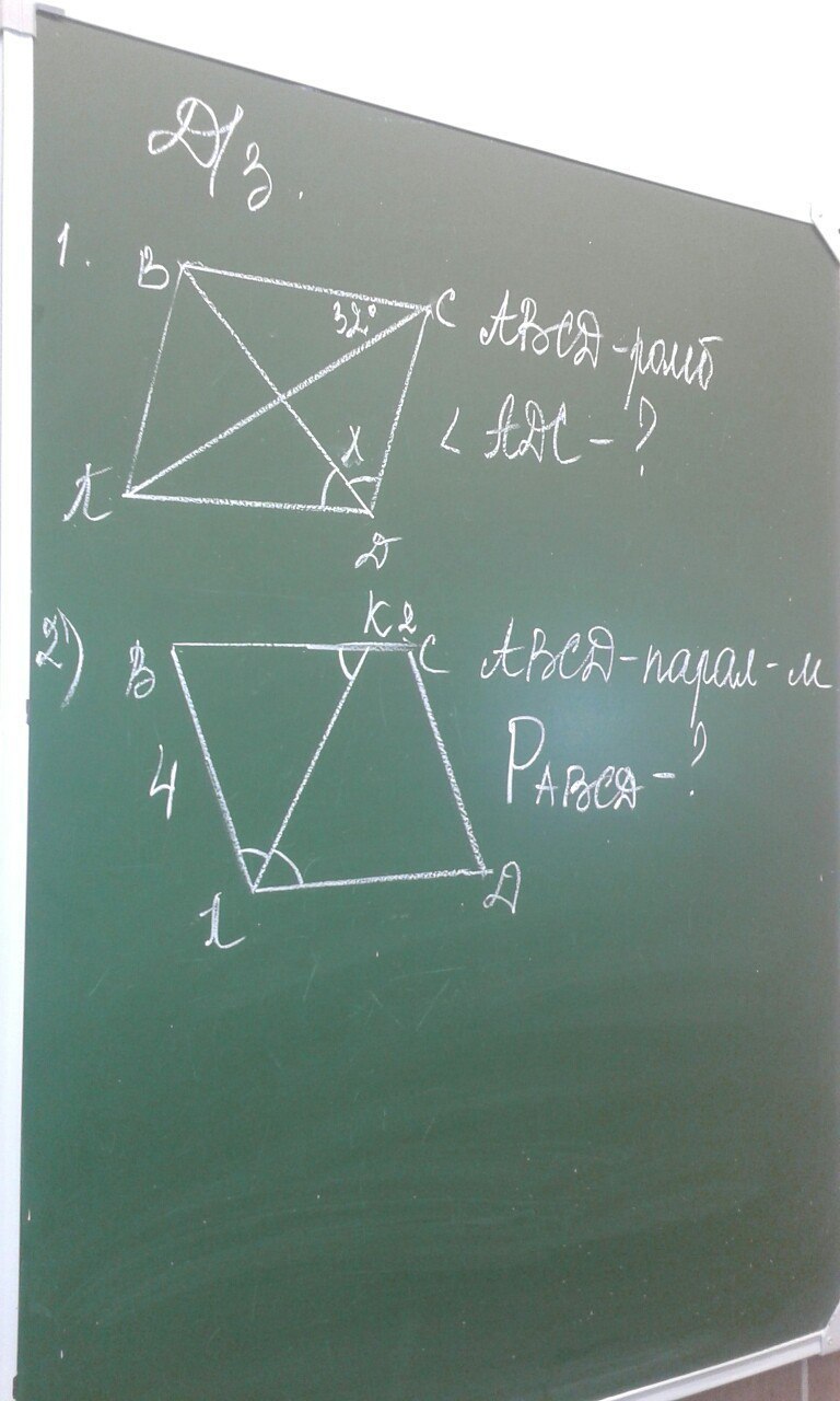 ∠ACB=∠ACD=32(по св-ву ромба(диганали ромба являются биссектрисами его углов))