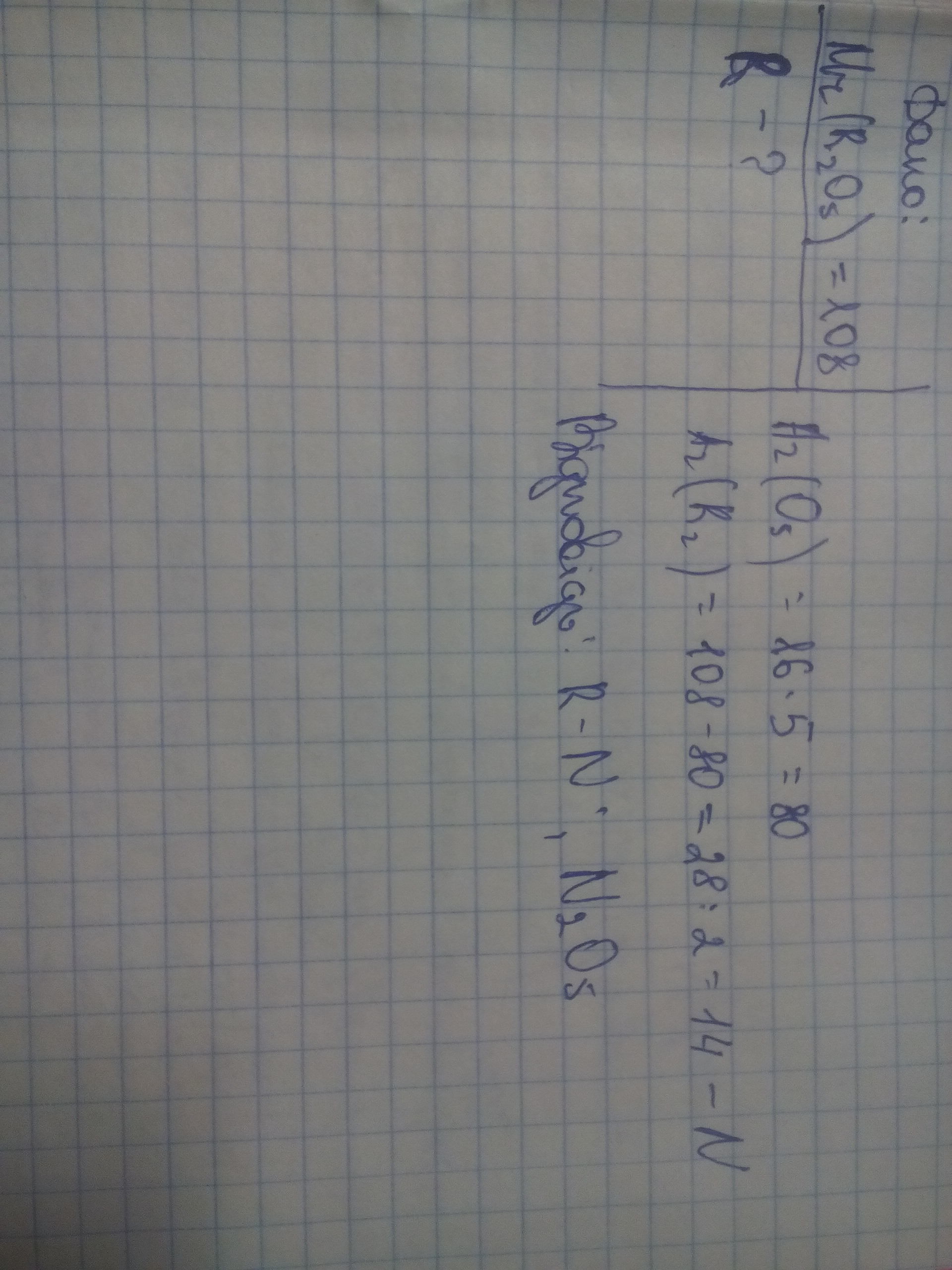 Вищий оксид елемента 5 групи має відносну молекулярну масу 108.назвати елемент. Если можно то на листочку и с дано)))
