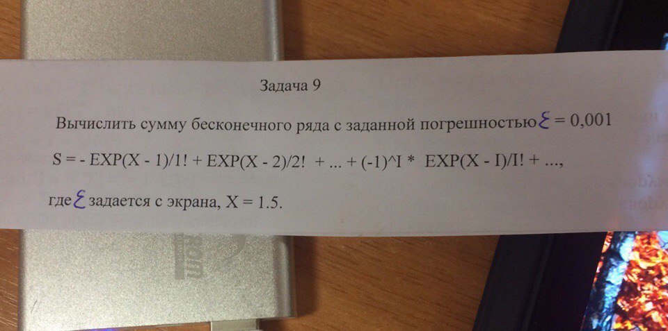 Здравствуйте!Помогите пожалуйста: вычислить сумму бесконечного ряда с заданной погрешностью E=0,001