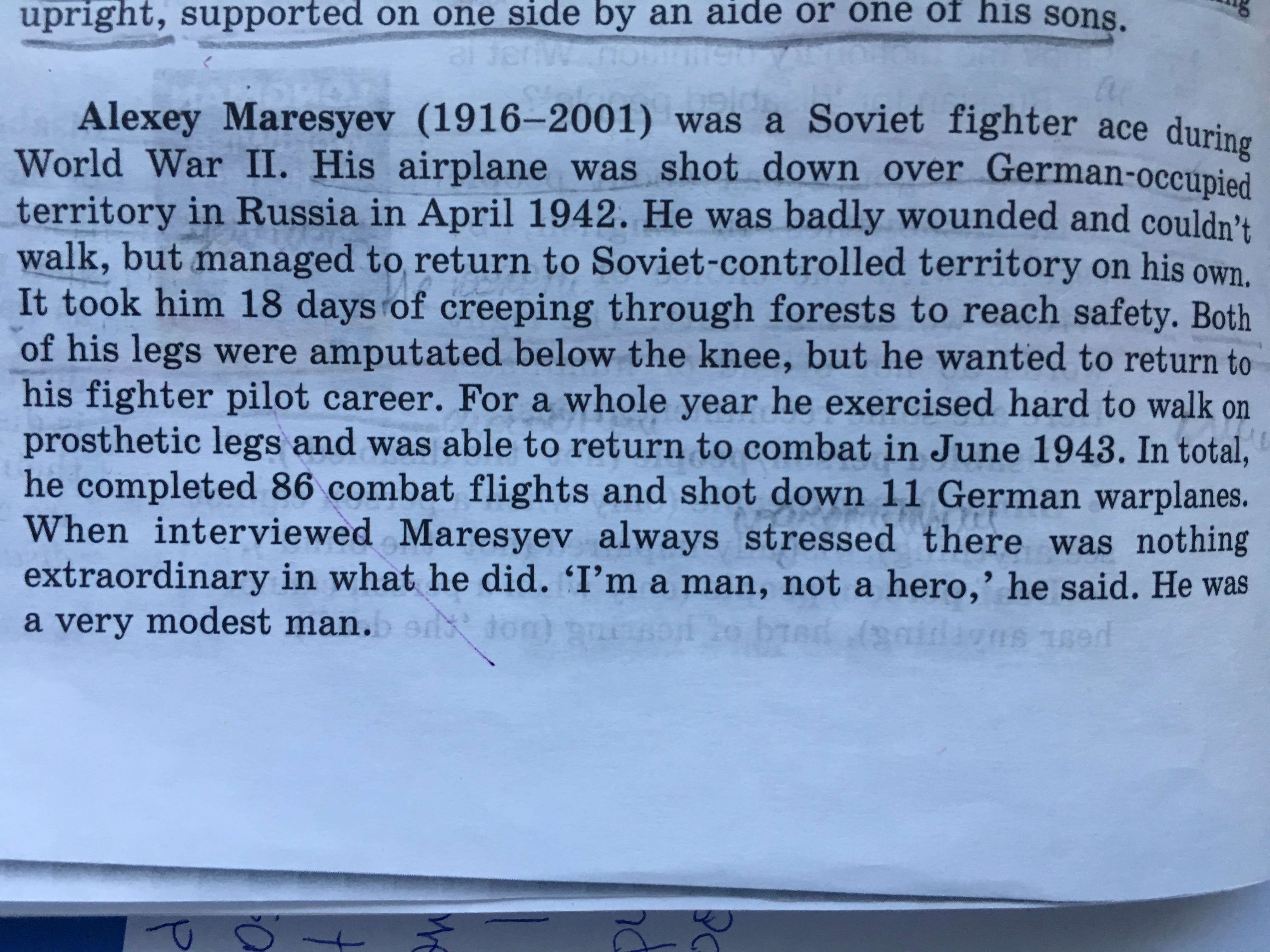 Alexey Maresyev was a Soviet fighter ace during World War II.