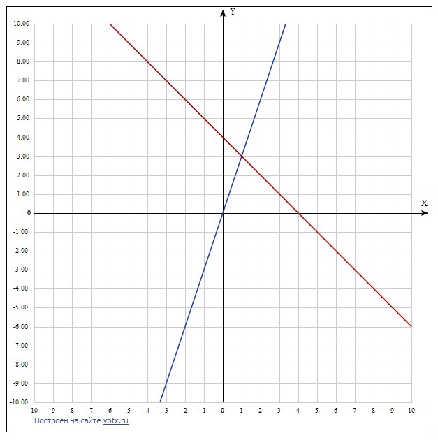По графику видно, что точкой пересечения является (1;3)