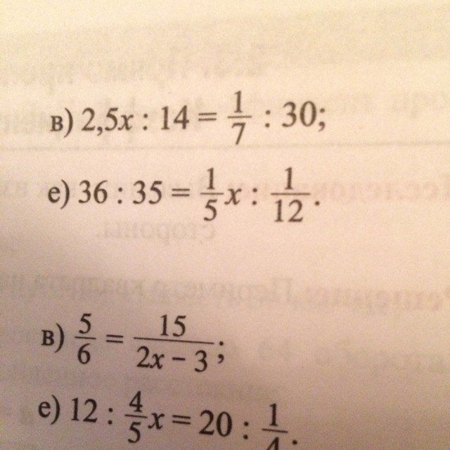 2) 36:35=1/5x:1/12
