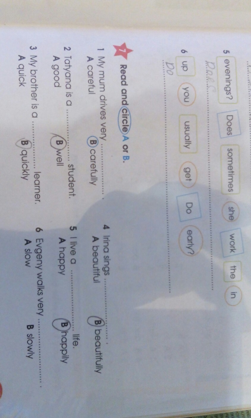 5) Does she sometimes work in the evenings?