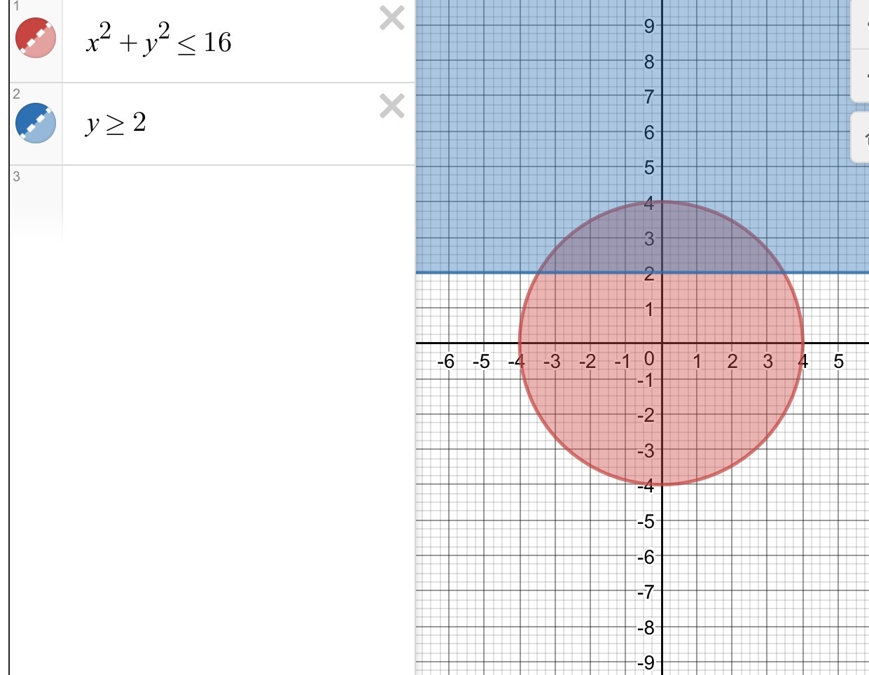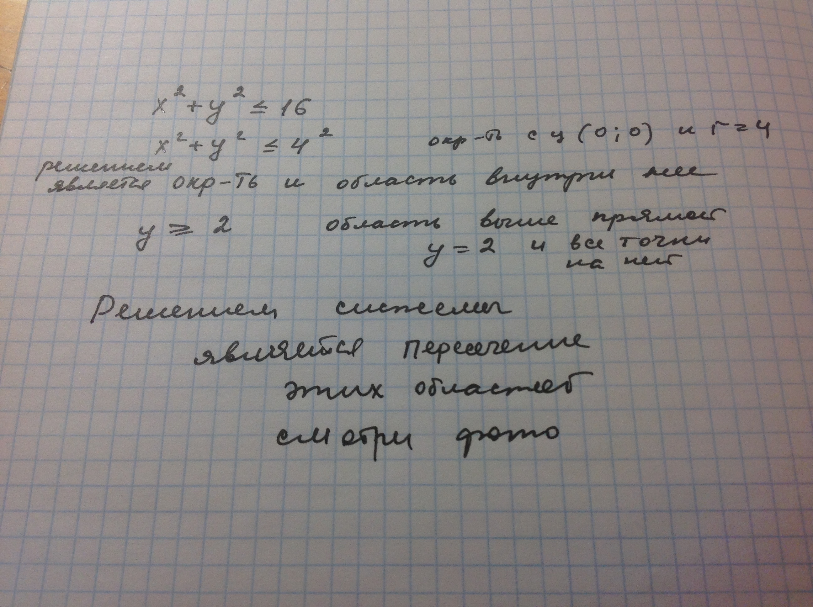 На координатной плоскости покажите штриховкой множество точек заданных системой неравенства x^2+y^2<=16