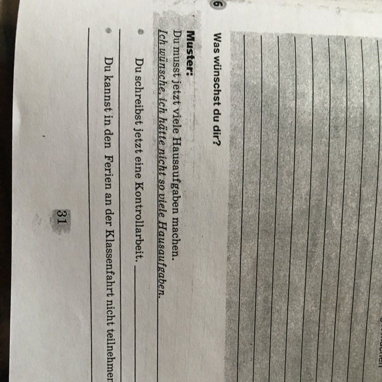 1) Ich wünschte, ich schriebe jetzt keine Kontrollarbeit.