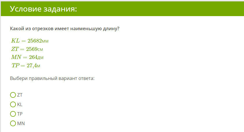 ответ: наименьшую длину имеет отрезок KL = 25682мм = 25,682 м