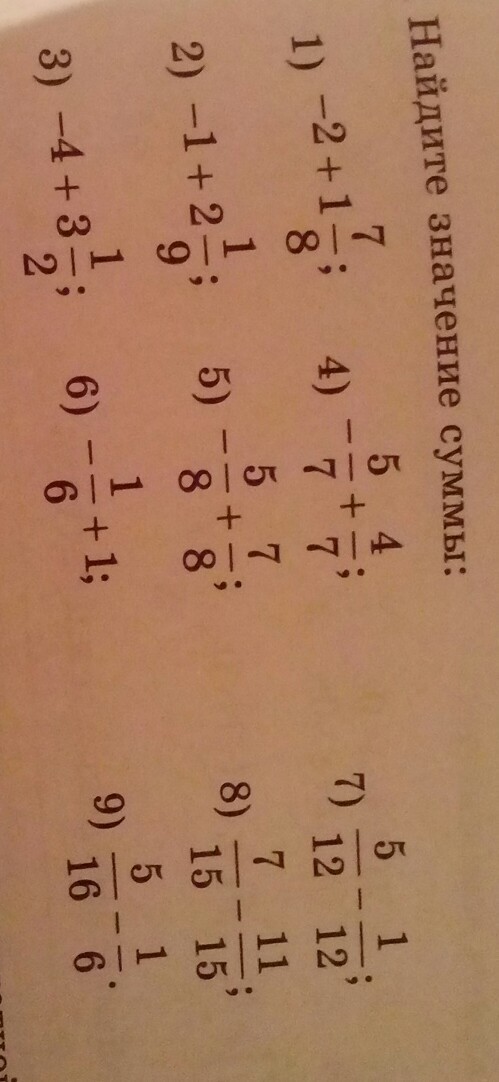 1) - 1/7 ; 2) 1 1/9 ; 3) - 1/2 ; 4) - 1/7 ; 5) 2/8 = 1/4 ; 6) 5/6 ; 7) 4/12 = 3/4