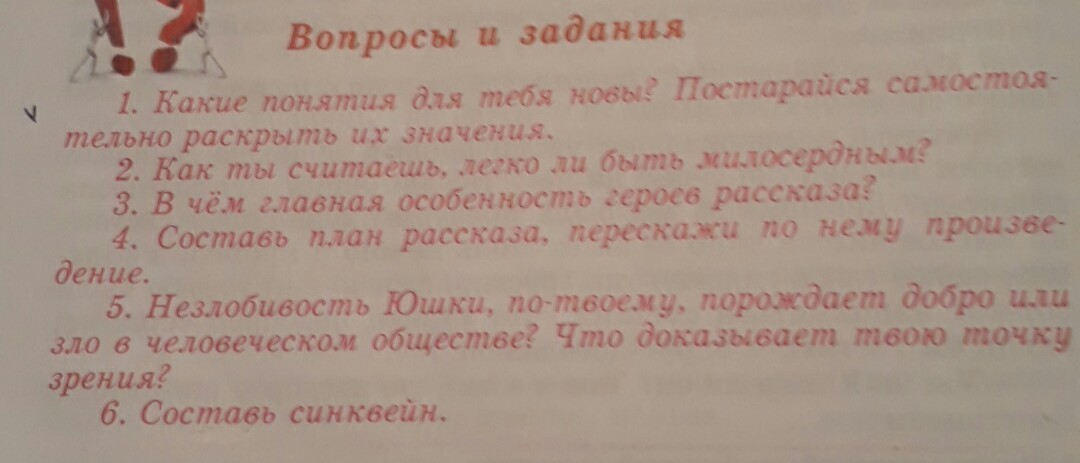 5.Рассказ А. П. Платонова "Юшка"-это история жизни человека, умевшего искренне и бескорыстно любить весь мир. Это также история жестокого и неправельного мира, не умеющего понять: как это - любить "просто так" ? Это история ошибок и находок, сострадания и бесчеловечности, жестокости и простого человеческого счастья.