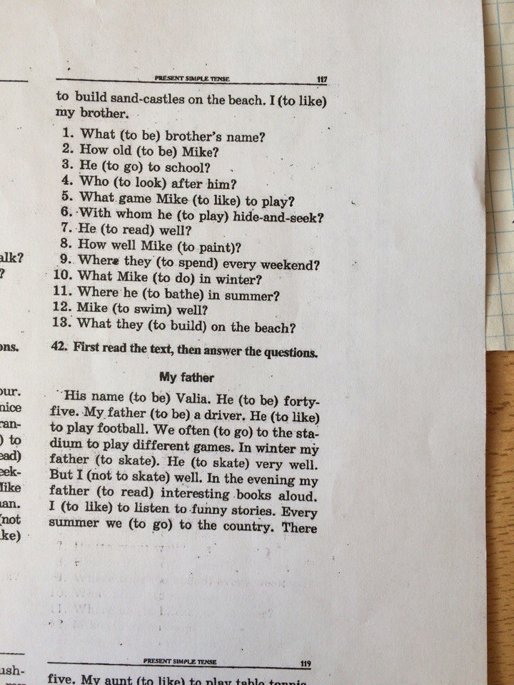 is, is, is, is, has, are, are, likes, plays, go, eat, ski, plays, watching, playing, visits