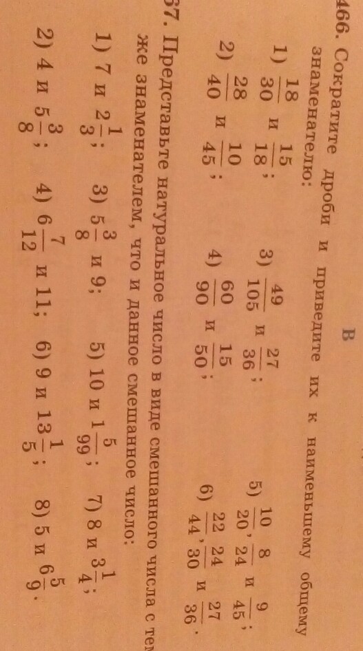 Сократите дроби и Приведите их к наименьшему общему знаменателю 18 30 и 15 18 две зад
