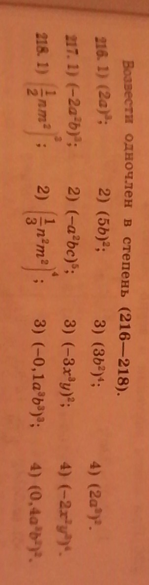 4)(0,4a³b²)²=0,4²*(a³)²*(b²)²=0,16a⁶b⁴
