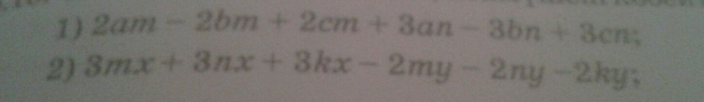 2)3mx+3nx+3kx-2my-2ny-2ky=3x(m+n+k)-2y(m+n+k)=(3x-2y)(m+n+k)