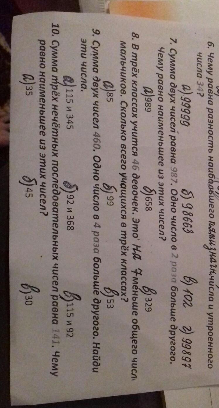 7. В (329) | x + 2x = 987 | 3x = 987 | x = 987 / 3 | x = 329 (наименьшее число) / - деление