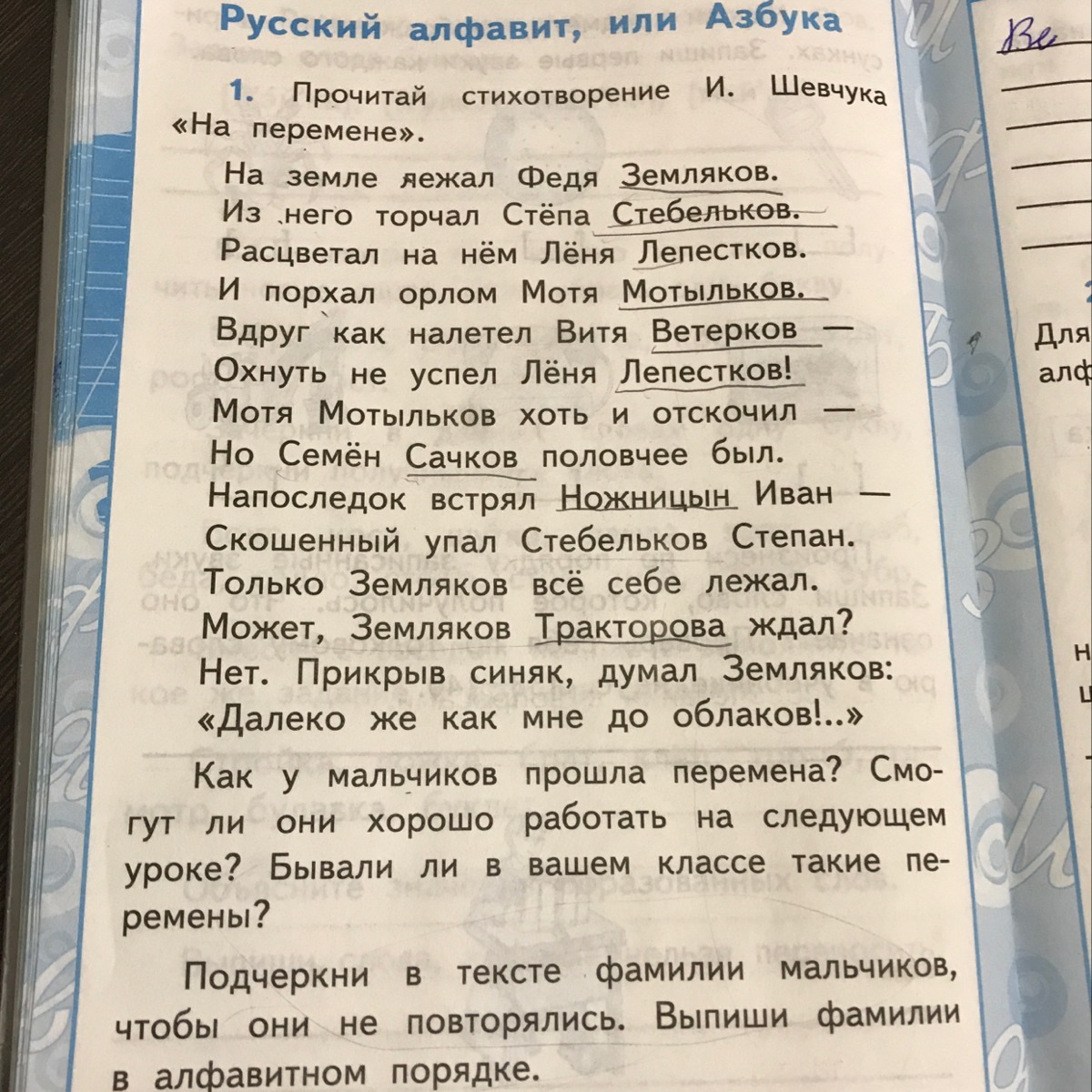 Помогите пожалуйста выпишите фамилия по алфавитном порядке