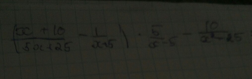 (x+10/5x+25-1/x+5)*5/x-5-10/x^2-25