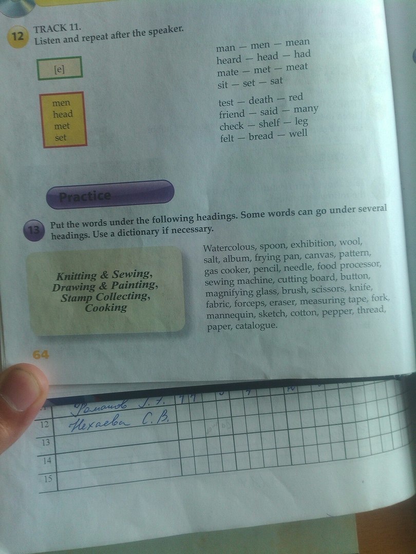 13. Knitting and Sewing : wool, pattern, needle, sewing machine, button, scissors, fabric, mannequin, cotton, thread.