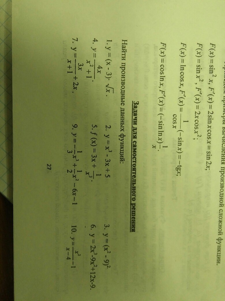Добрые люди, срочно нужна помощь! Найти производные данных функций, пропустила тему и теперь туплю...