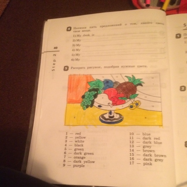 рисунок плохо видно, поэтому не разобрать цифры на нем. Вам перевели цвета, поэтому сами уже подберите по цифрам и раскрасьте рисунок