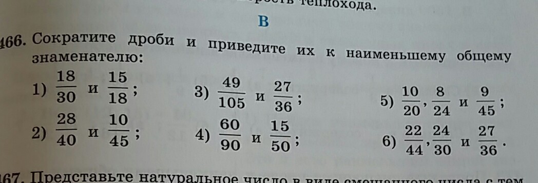 Сократите дроби и приведите их к наименьшему общему знаменателю