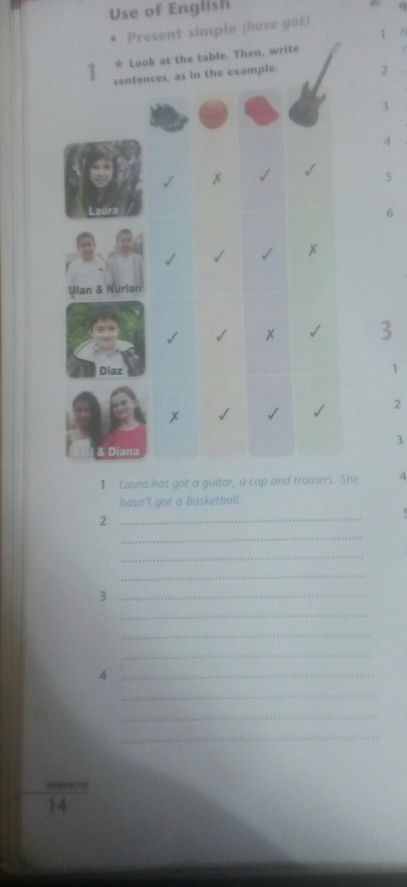 1) Ulan and Nurlan have got trainers, a basketball and a cap, but they haven't got a guitar.